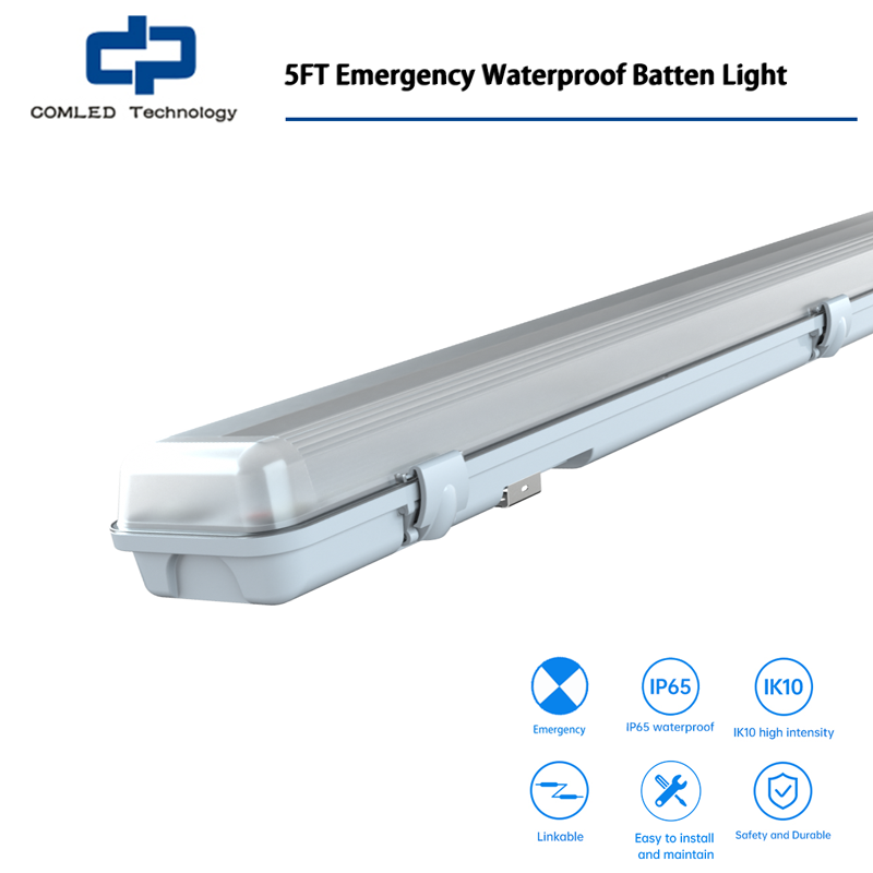 5FT Waterproof Outdoor LED Vapor-Proof Light Fixture, Surface Mount Quick Wiring, Polycarbonate Housing, Optional Emergency & Sensor Dimming